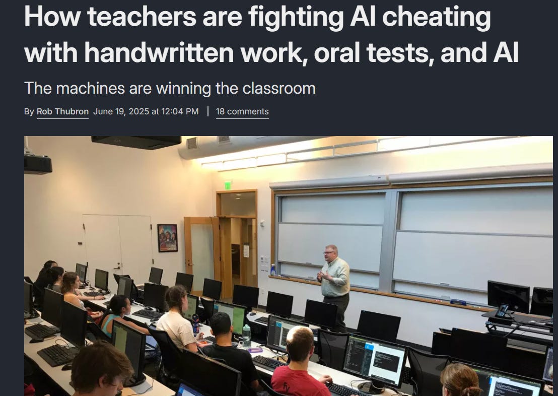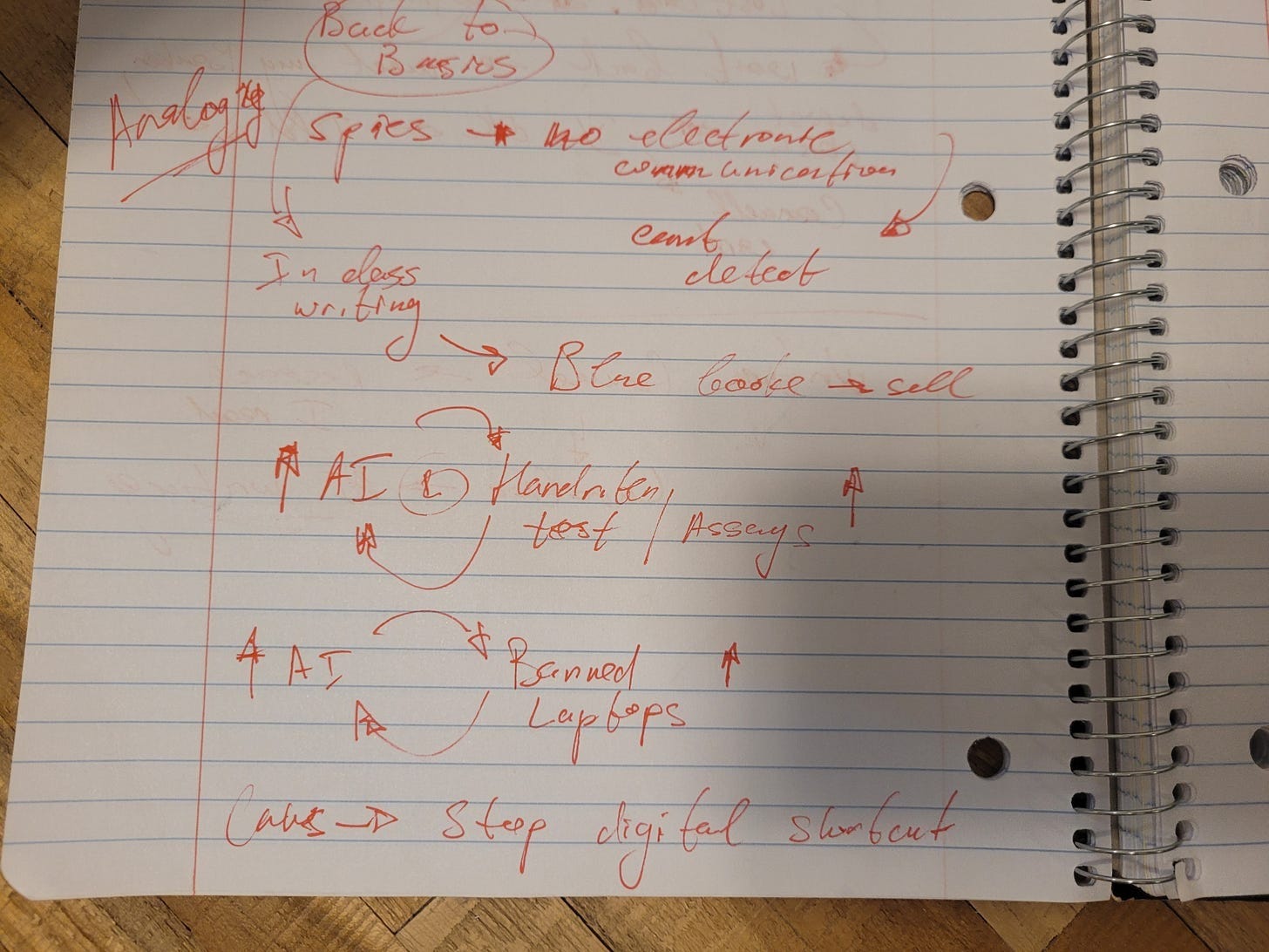 But here’s where it really gets absurd. The more students rely on AI, the more the system pushes them back into the analog world.
