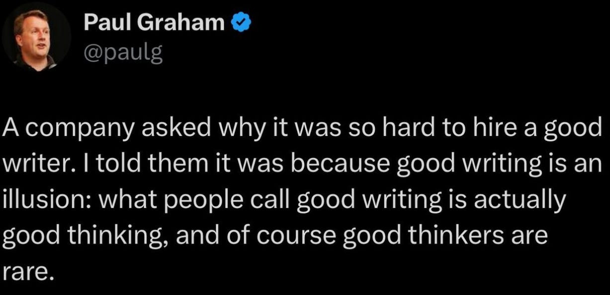Paul Graham, co-founder of Y Combinator, once said it’s hard to find a good writer because good writing requires good thinking.
